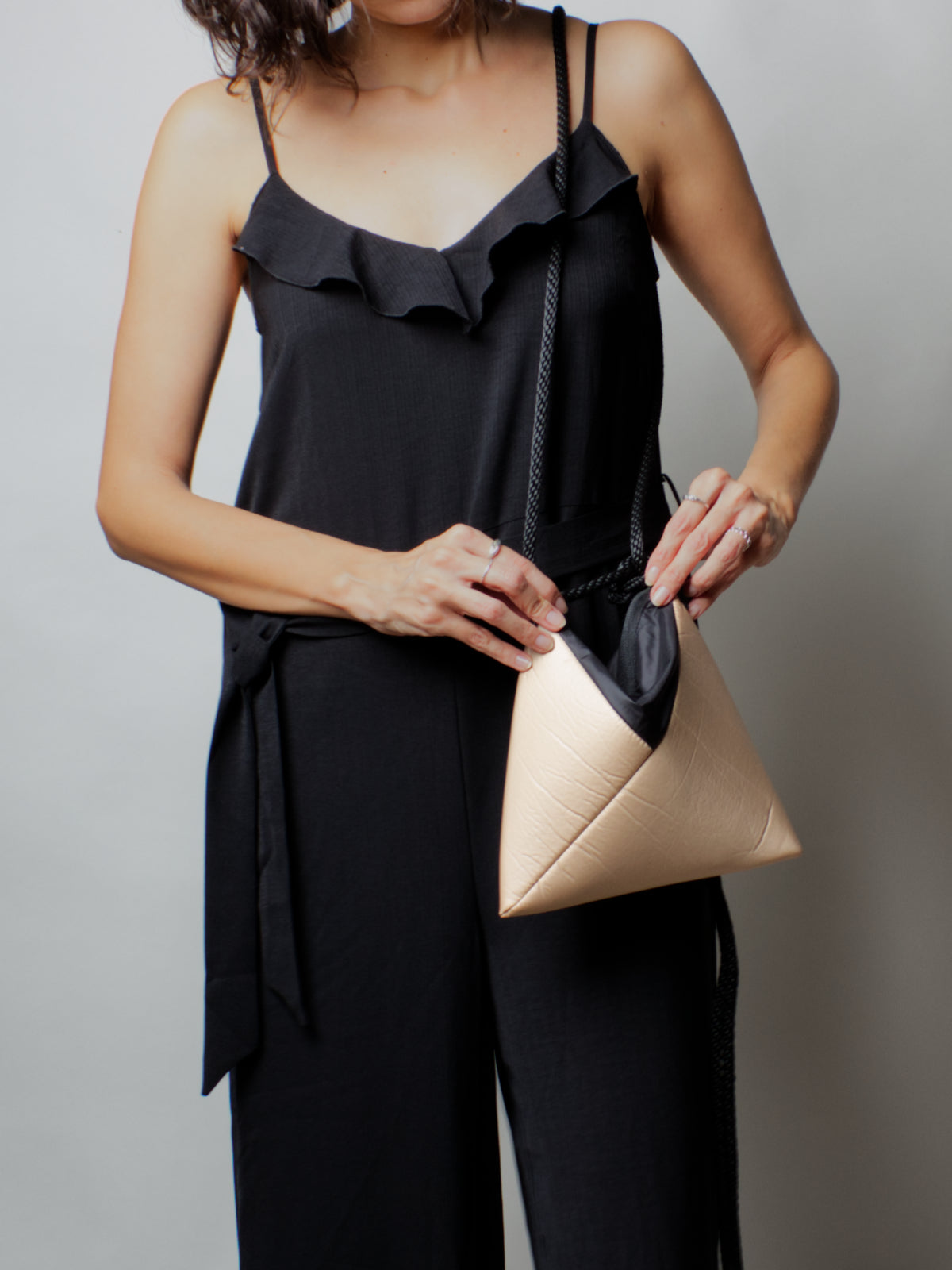 The Ātoi Prism is a stunning piece that combines innovative design with functional elegance. Inspired by the Japanese art of origami, this module redefines versatility in modern accessories. The Prism bag can be worn in two distinct styles—flattened for a sleek look or in its sculptural prism shape for a bolder statement. Adapt your style to suit any occasion effortlessly.